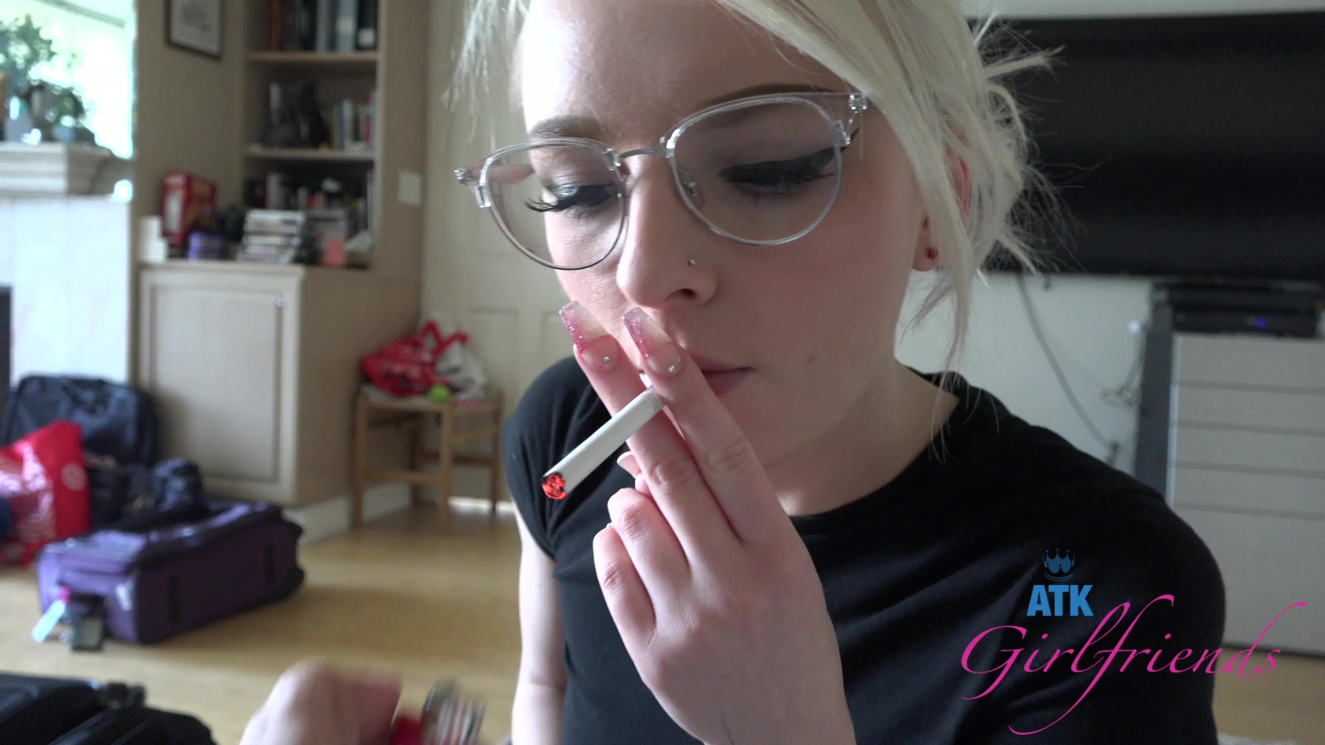 «Gorgeous inked and pierced blonde smoking before fucking»